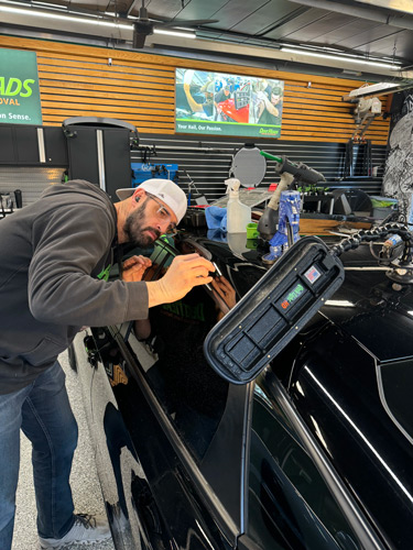 Using paintless dent removal with a glue-pulling technique, we applied glue tabs to the dent and pulled from the exterior side. Then, we meticulously tapped the metal back into its pre-dented location and blended it.