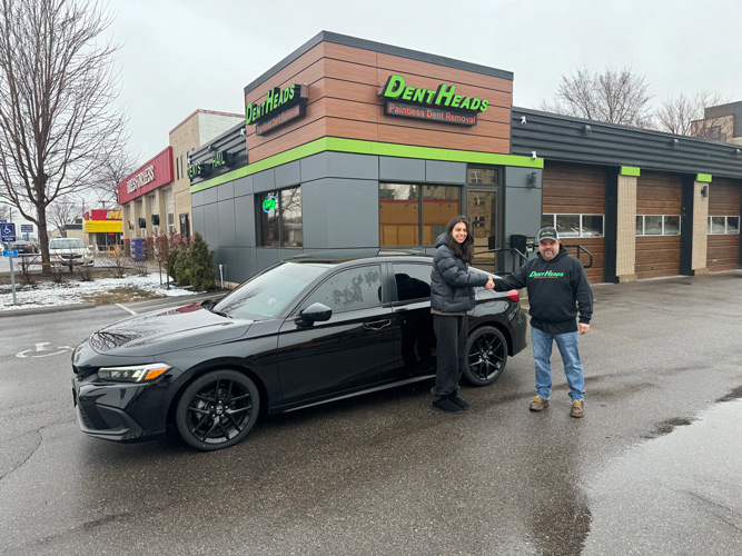 Customer & Vehicle: Khiya R. from Savage, Minnesota, brought her beautiful black 2022 Honda Civic to Dent Heads PDR for an estimate. After discussing the bid, Khiya was eager to proceed and scheduled the repair.